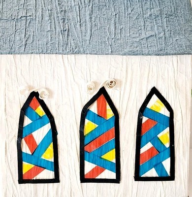 - 1970s Vintage Paper Church Faux-Stained Glass Village Crafts Maine Handmade SS