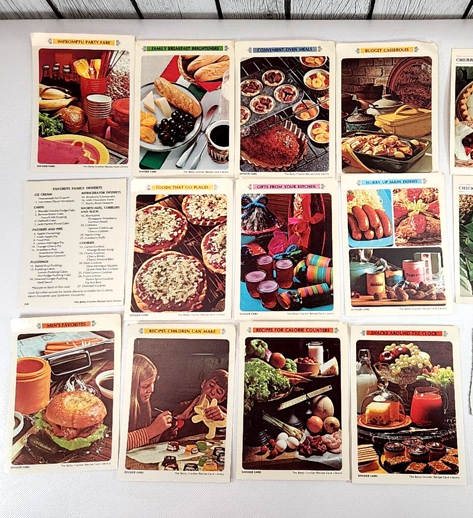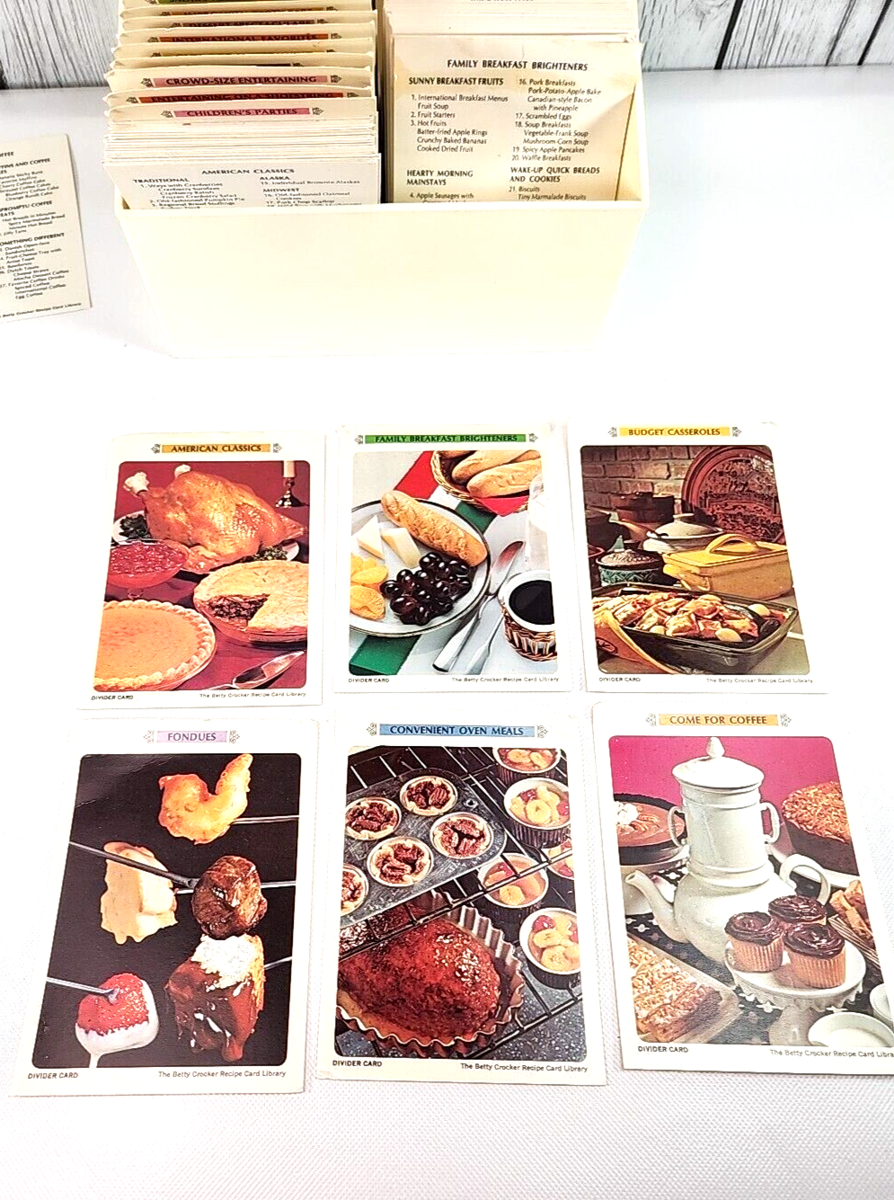 - 1971 Betty Crocker Recipe Card Library & White Box - Nearly Complete +Extras