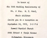 - 1972 50th Wedding Anniversary Invitation Summit Baptist Church Milwaukee F6C
