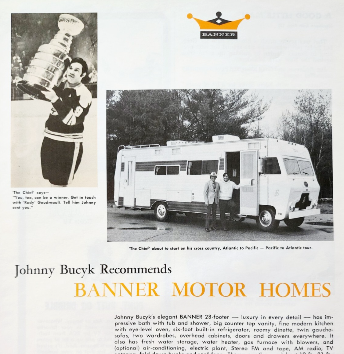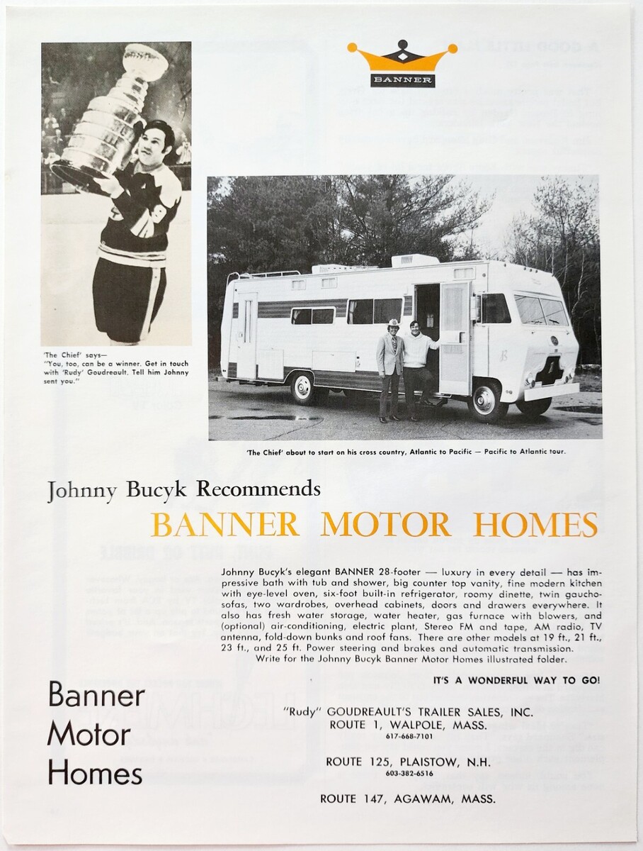 - 1972 Banner Motor Homes RV Advertisement Johnny Bucyk Bruins NHL Auto DWF22