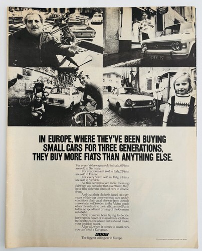 1972 Fiat European Cars Italy Germany Sweden Advertisement Automobilia DWII17
