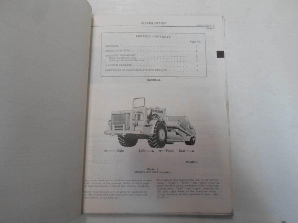 1972 INTERNATIONAL MODELE 270 PAY SCRAPPER MANUEL D'OPERATEUR USE TACHE