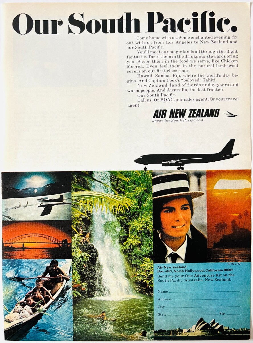 - 1972 New Zealand Airlines Advertisement Aviation Vintage South Pacific DWW10D