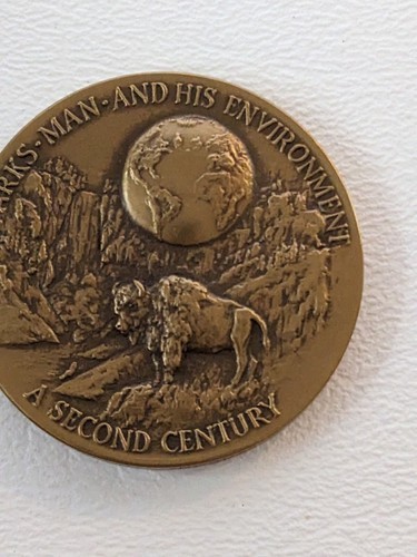 Up for sale is a 1972 Old Faithful Parks Man National Park Centennial Bronze by Medallic Art Co.