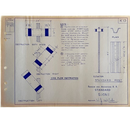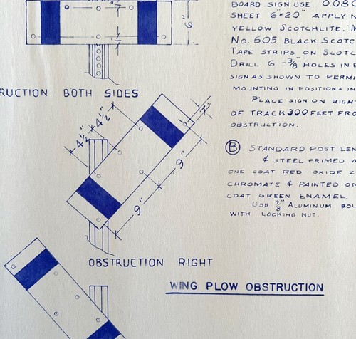 - 1972 Railroad Bangor Aroostook Wing Plow Obstruction Signs Blueprint K13 DWDD12