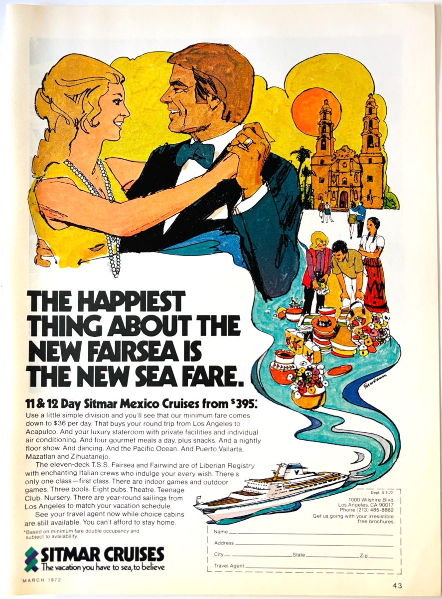 1972 Sitmar Fairsea Cruise Ship Advertisement Vintage Mexico Cruises DWW10E