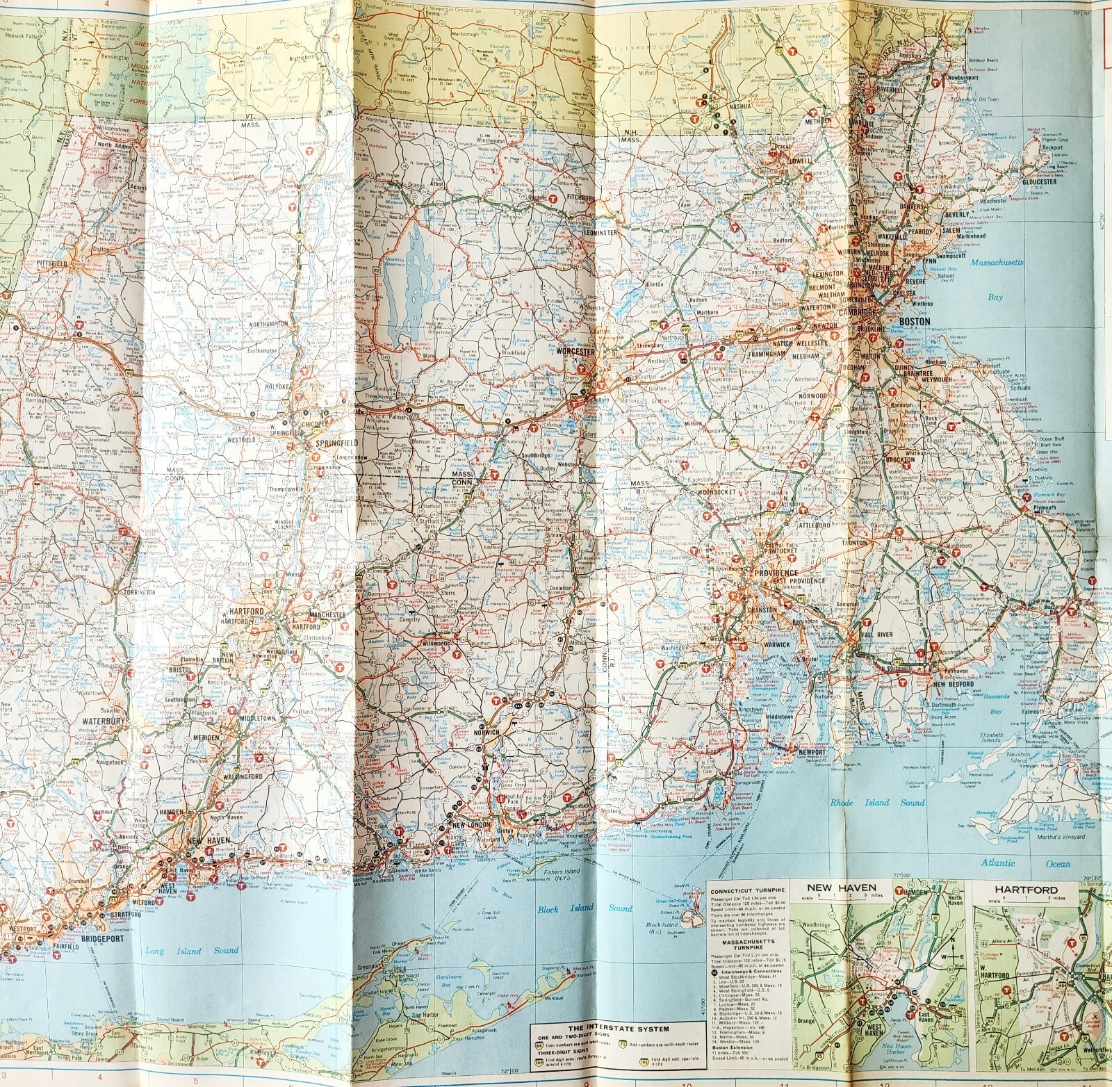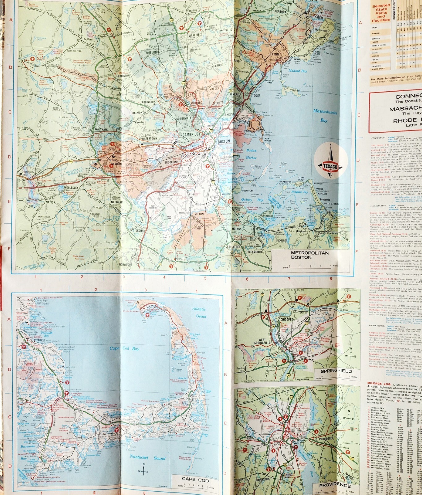 - 1972 Texaco Road Map Mass Conn Rhode Island New England Folding 26.5 x 18" F10
