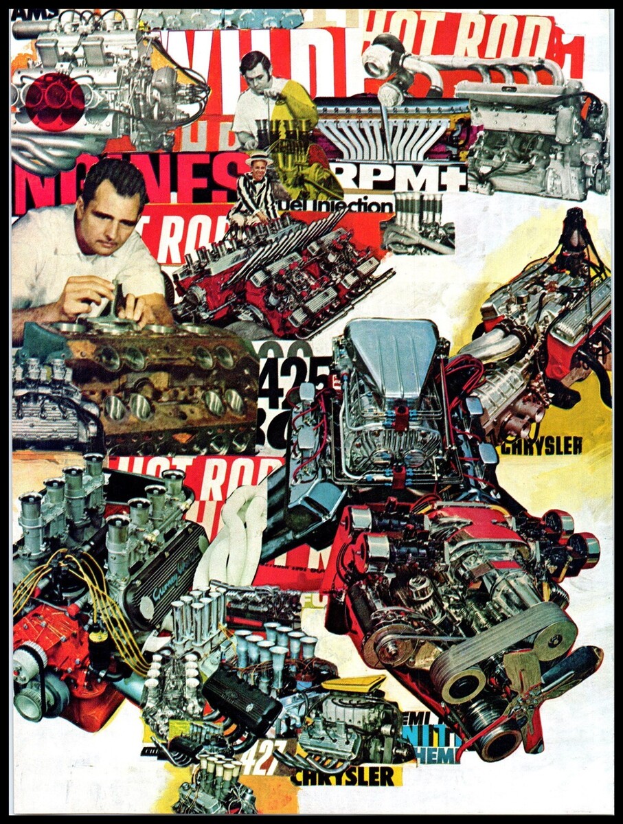 - 1973 HOT ROD Magazine Print - Collage of Racing Engines, Hemi, 425, 427, A5
