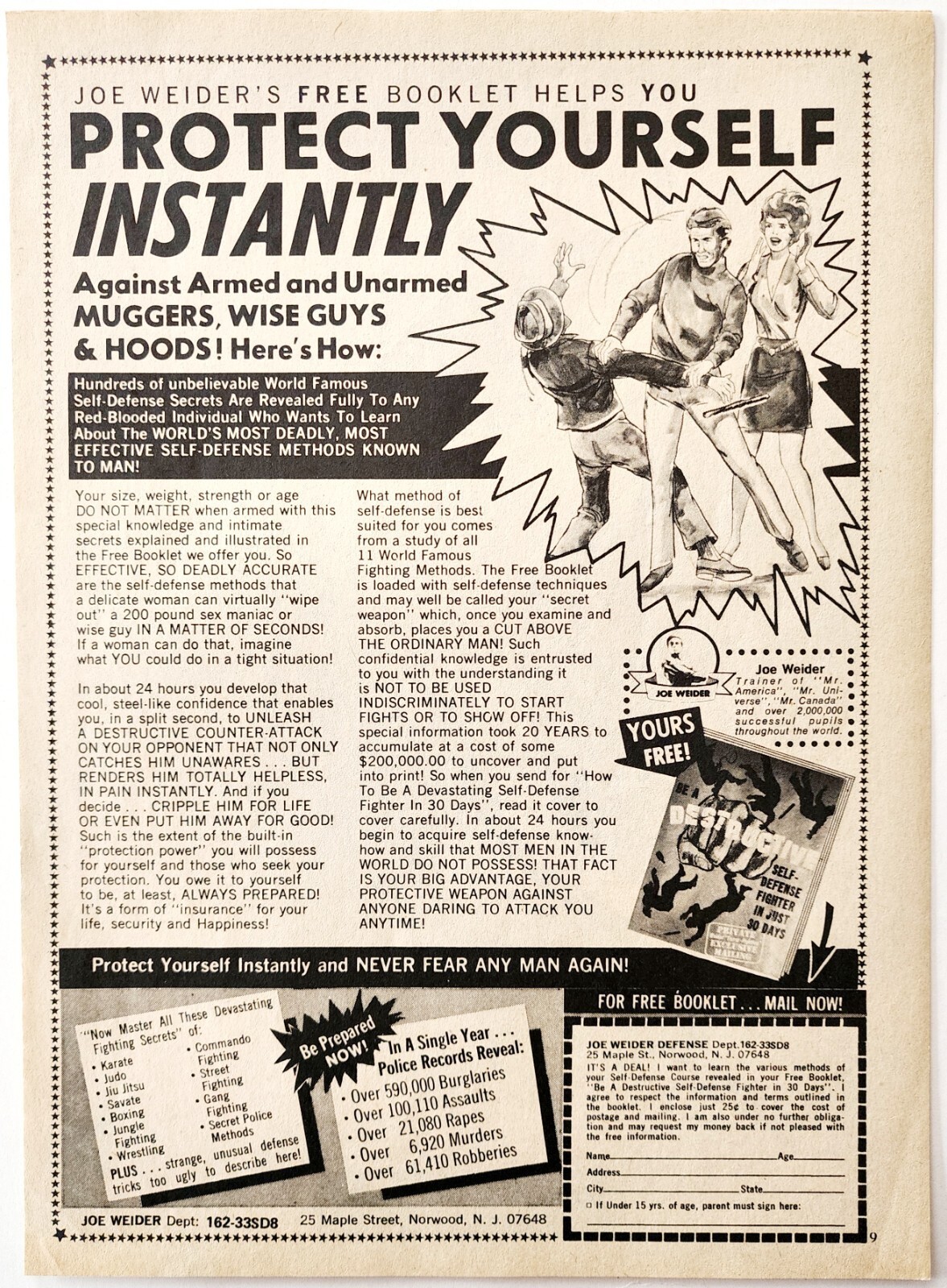 - 1973 Joe Weider Self Defense Course Advertisement Martial Arts Vintage DWF11