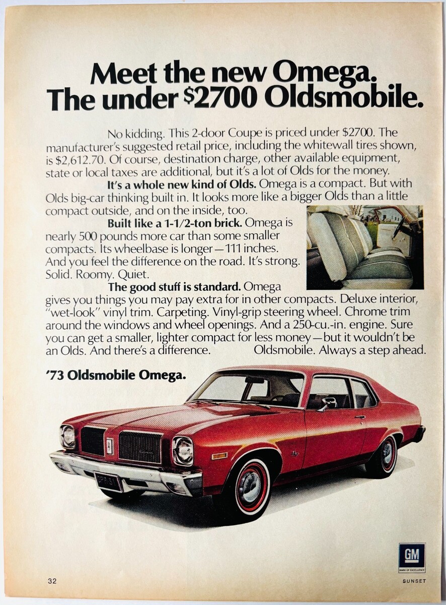 1973 Oldsmobile Omega 2 Door Coupe Advertisement Vintage Automobile DWW10E