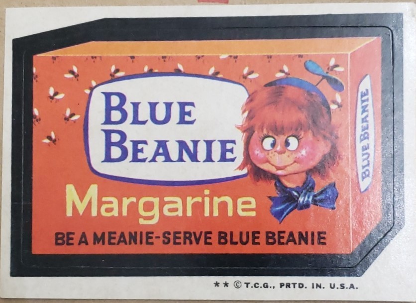 1974/ 6th S TOPPS WACKY sticker Blue Beanie Margarine Be A Meanie