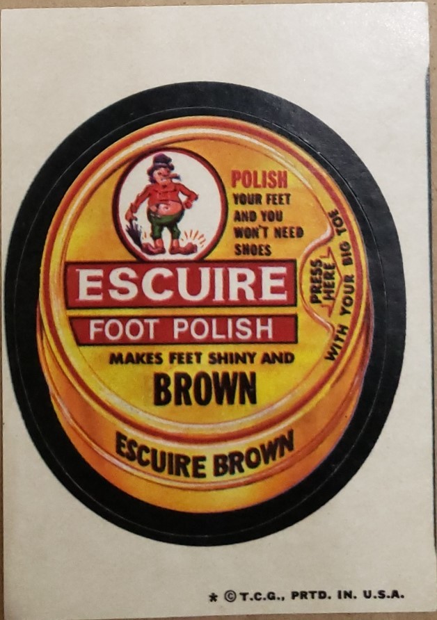- 1974/ 6th S TOPPS WACKY sticker Escuire Foot Polish Make Feet Shiny and Brown