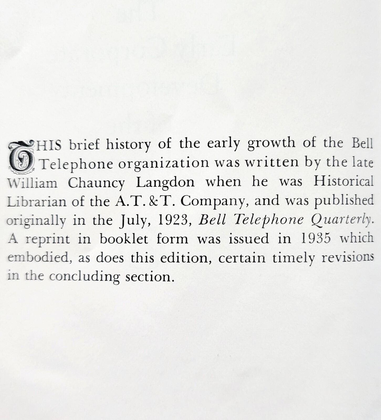 1974 AT&T Bell Early Corporate Development Of The Telephone Booklet PB Vtg C6A