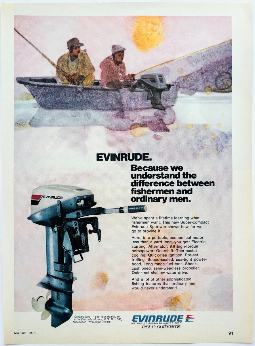 - 1974 Evinrude Sportwin Motor Advertisement Fishing Boat Engines Vintage DWX10A