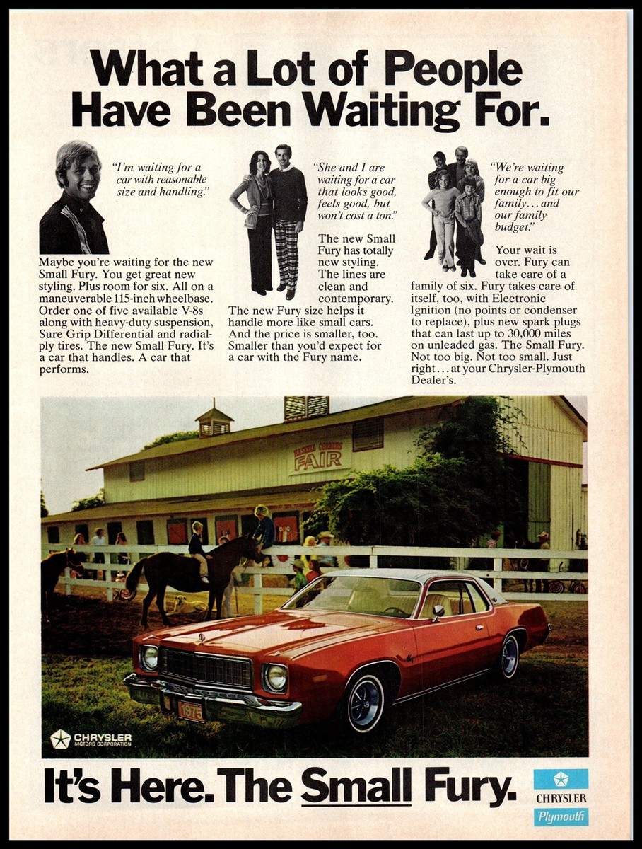 1974 Magazine Car Print Ad - Chrysler / Plymouth "Small" Fury A7