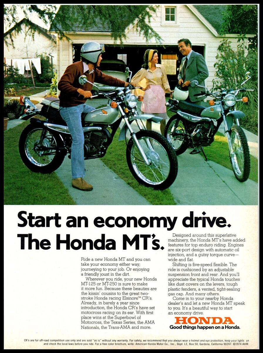 - 1974 Magazine Motorcycle Print Ad - HONDA MT-125, MT-250 A7