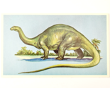 1975 BRONTOSAURUS Dinosaur Card Vintage Prehistoric Illustration Ephemera B78A