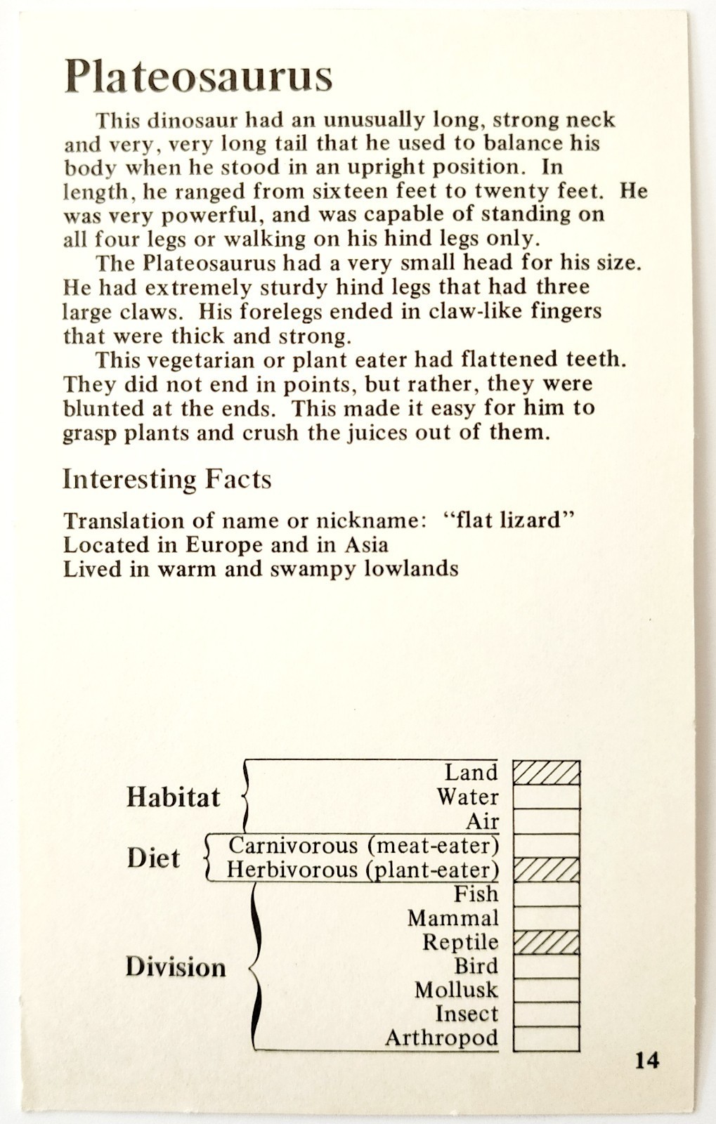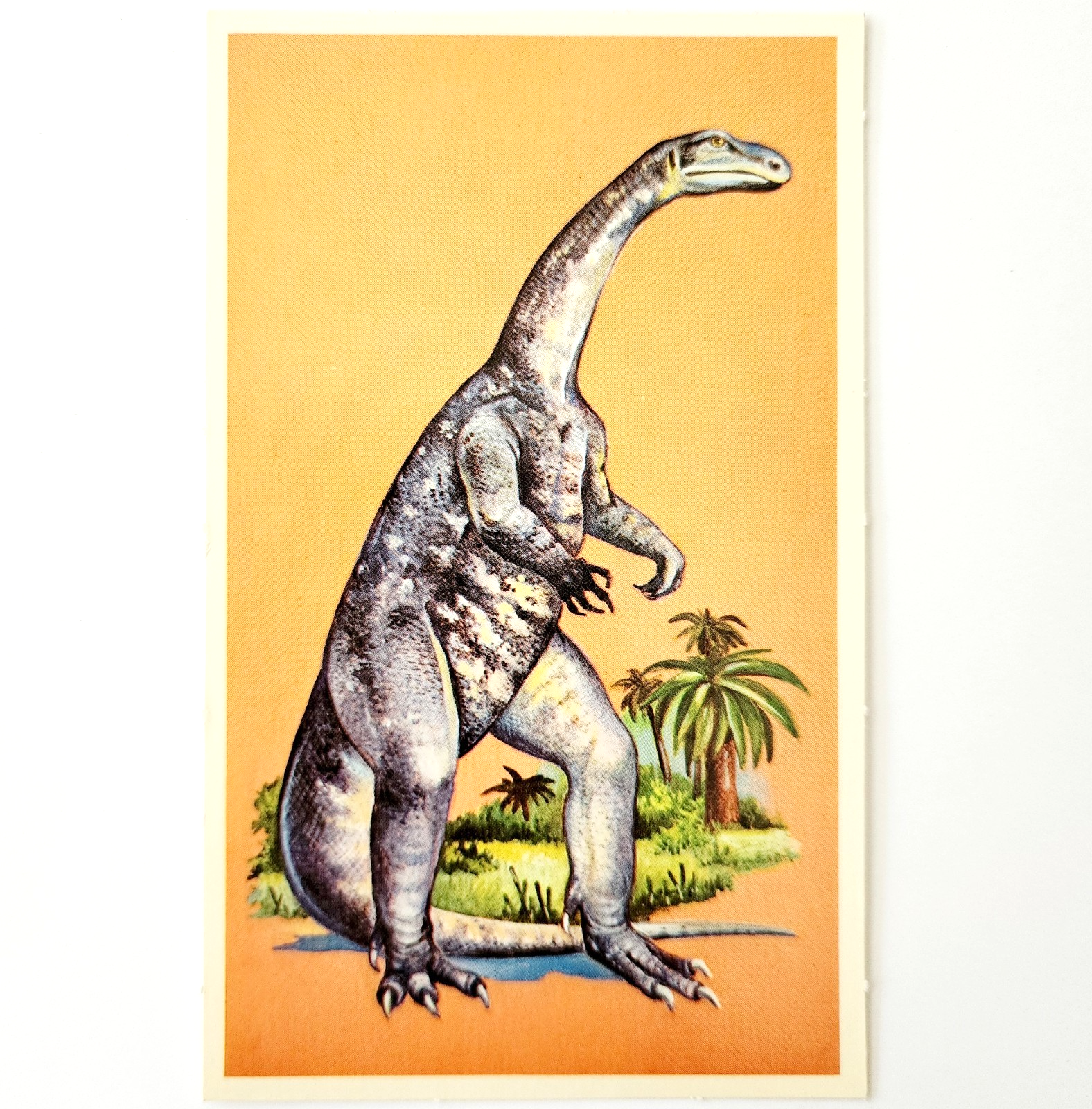 - 1975 PLATEOSAURUS Dinosaur Card Vintage Prehistoric Illustration Ephemera B78A