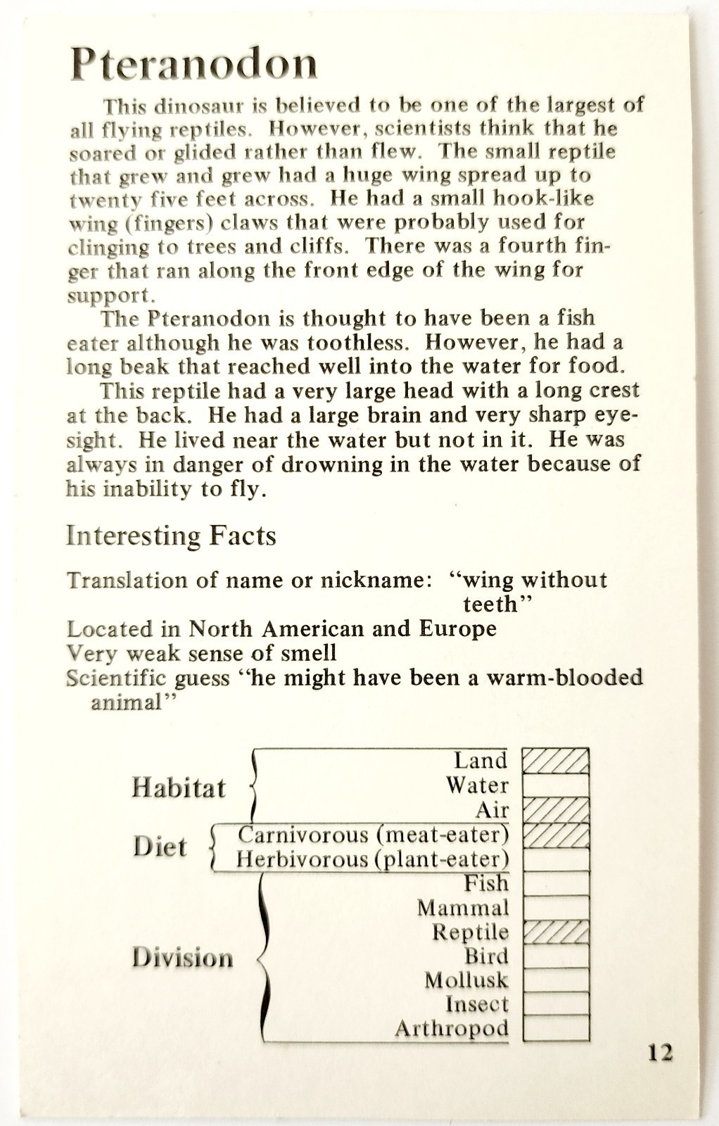 1975 PTERANODON Dinosaur Card Vintage Prehistoric Illustration Ephemera B78A