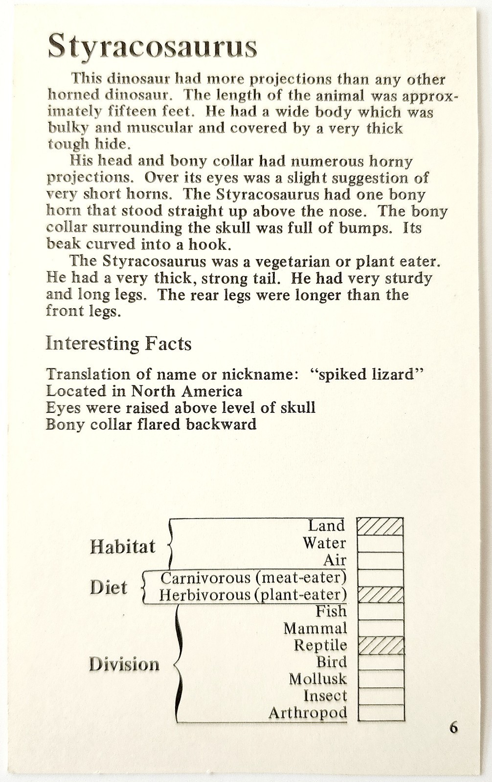 - 1975 STYRACOSAURUS Dinosaur Card Vintage Prehistoric Illustration Ephemera B78A