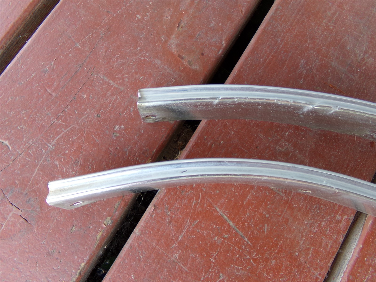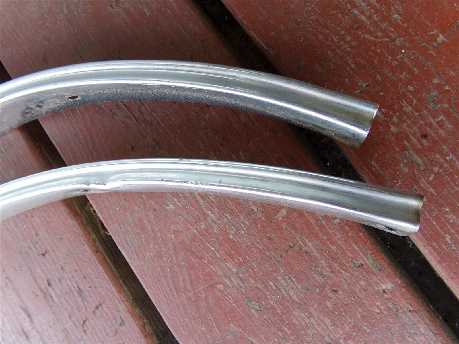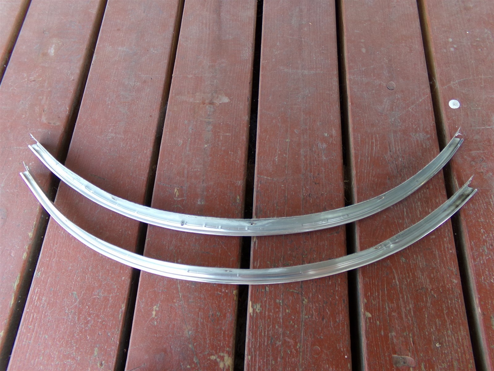 These were removed from a woody Volare wagon. There are two sizes of these, these are the smaller ones. Verify they are correct for your application prior to purchase. These are 24 1/2" overall. Both have dings, one more than the other and the other has a small dent - see pictures. These have undercoating or tar on them, typical scuffs, wear and enlarged screw holes. Please use the zoom feature to closely inspect pictures. My items are sold as-is, no returns. Descriptions, pictures and part numbers (when available) are provided. You are responsible for ensuring that it is correct for your application or purpose. We use International shipping. charges the shipping cost. If you've had 3 offers declined, message us with your offer. Don't forget to add our store (stores.ebay.com/n2mopars) to your favorites, we are adding new items constantly. Thank you for looking! 82525