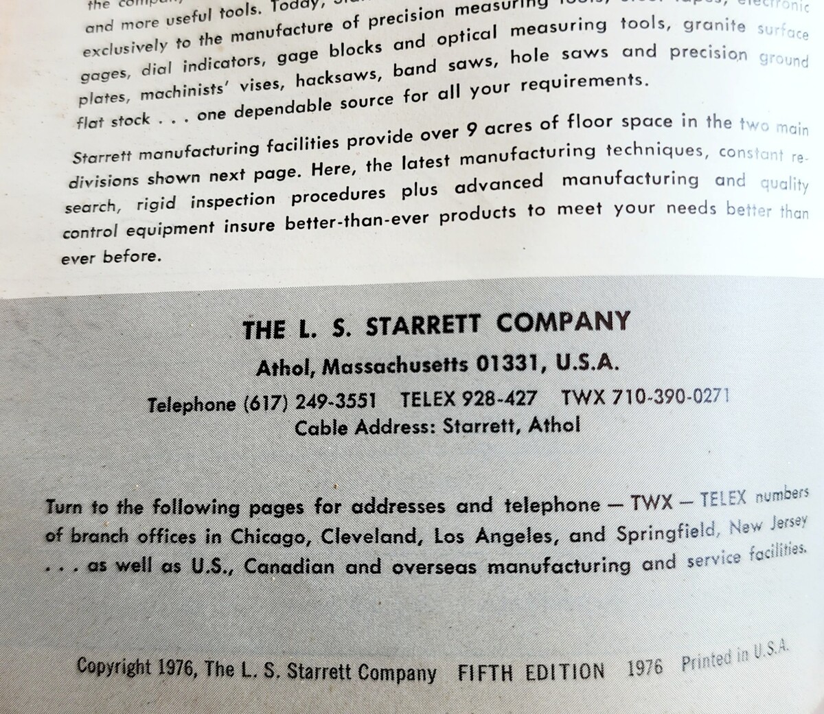 - 1976 Starrett Tools Gages Measuring Catalog 5th Edition Industrial PB VTG C93