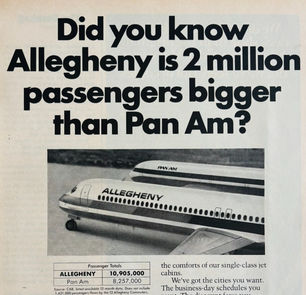 - 1977 Allegheny Airlines Advertisement Vintage Aviation Airplane Travel DWF16