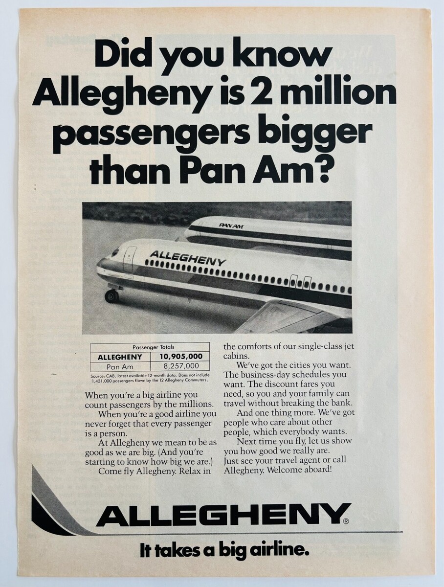 - 1977 Allegheny Airlines Advertisement Vintage Aviation Airplane Travel DWF16