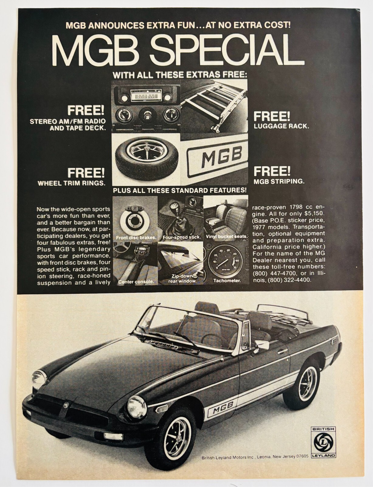 1977 British Leyland Motors MGB Advertisement Automobilia Car Accessories DWF15