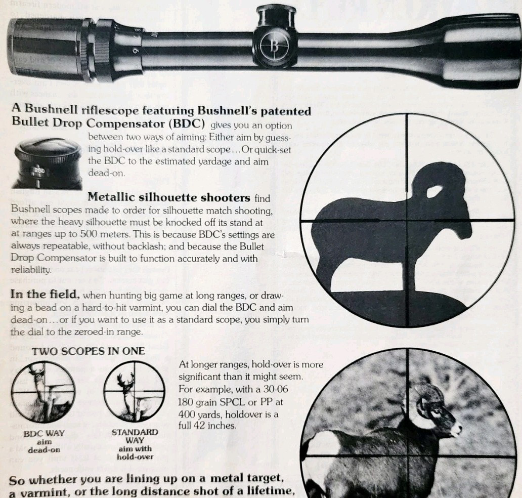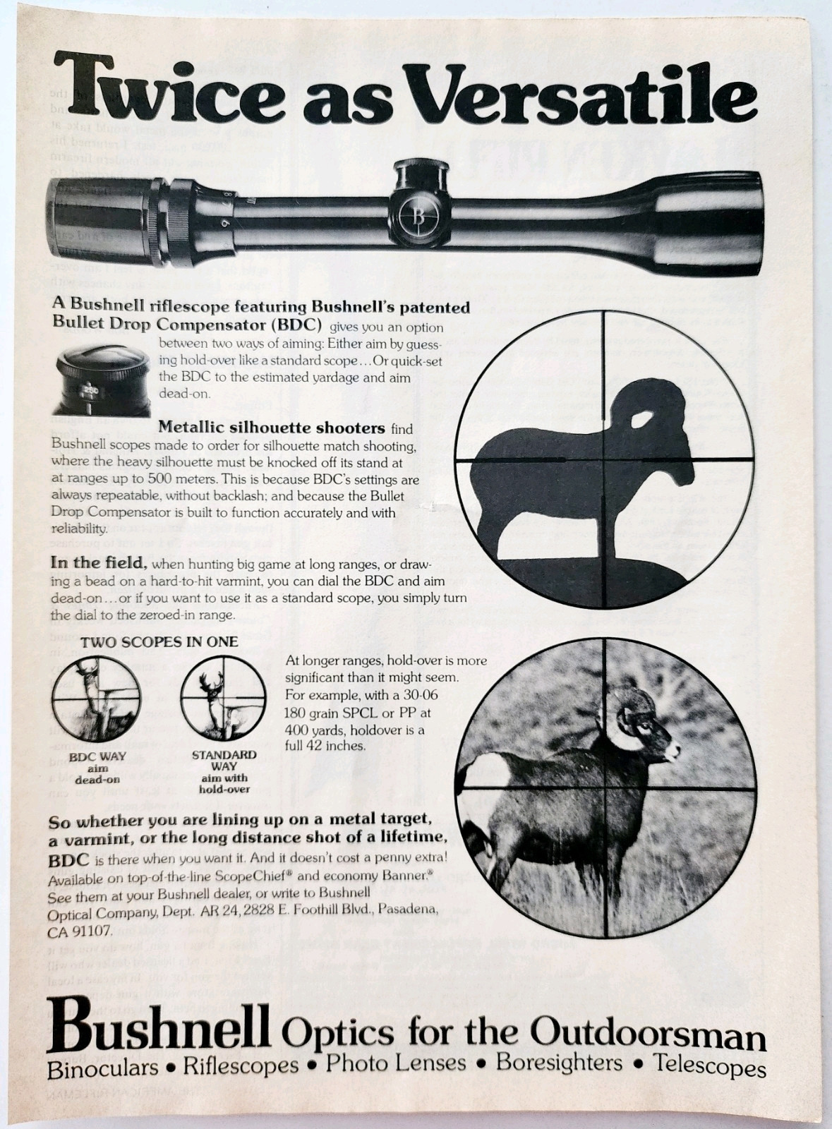 - 1977 Bushnell Bullet Drop Compensator Scope Advertisement Hunting Optics DWQQ4