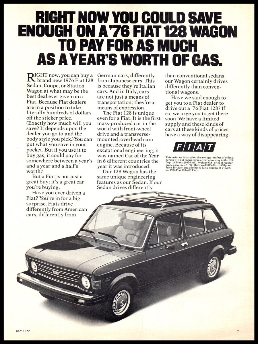 1977 Magazine Car Print Ad - 1976 Fiat 128 Wagon A6