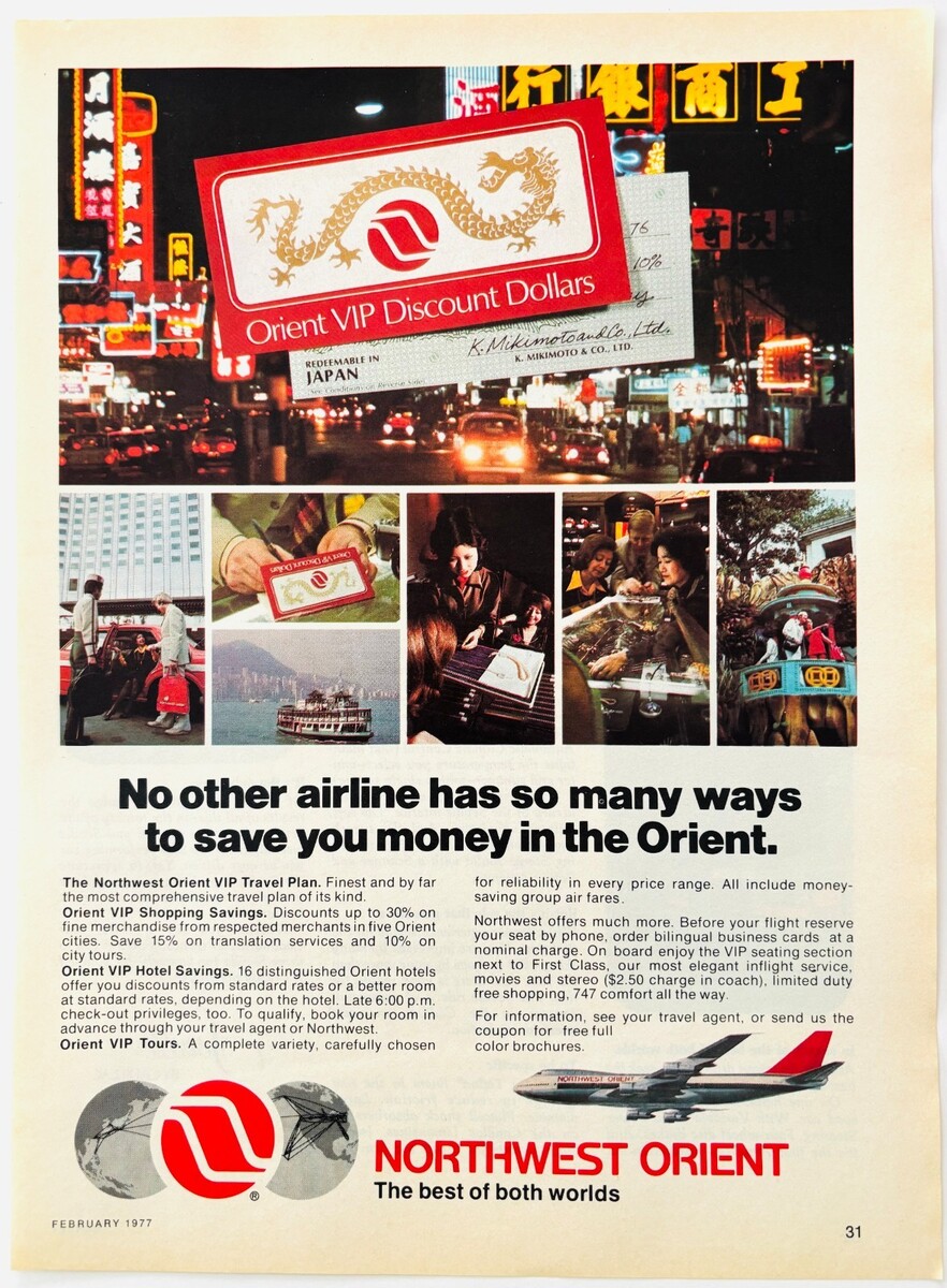 - 1977 Northwest Orient Airlines Advertisement Vintage Aviation Travel DWW13C