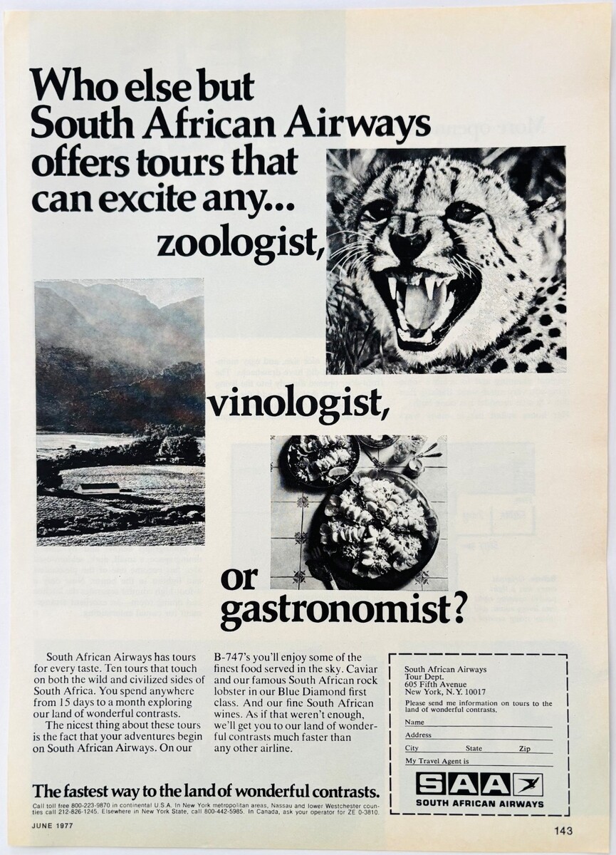 - 1977 South Africa SAA Airlines Advertisement Vintage Travel Aviation DWW13C