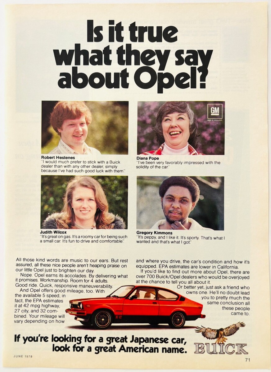 - 1978 Buick Opel Advertisement Classic Automobilia Japanese Style Car DWW12C