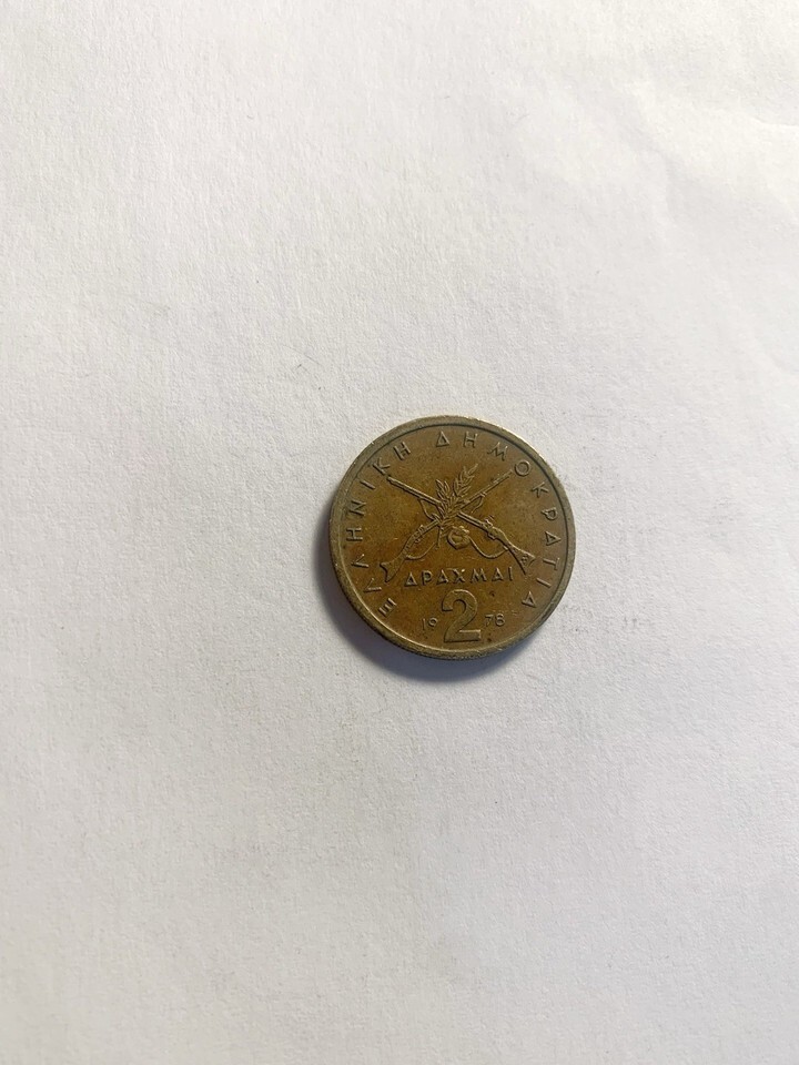 - 1978 Greece 2 Drachmai Coin Crossed Rifles War Hero Kolokotronis