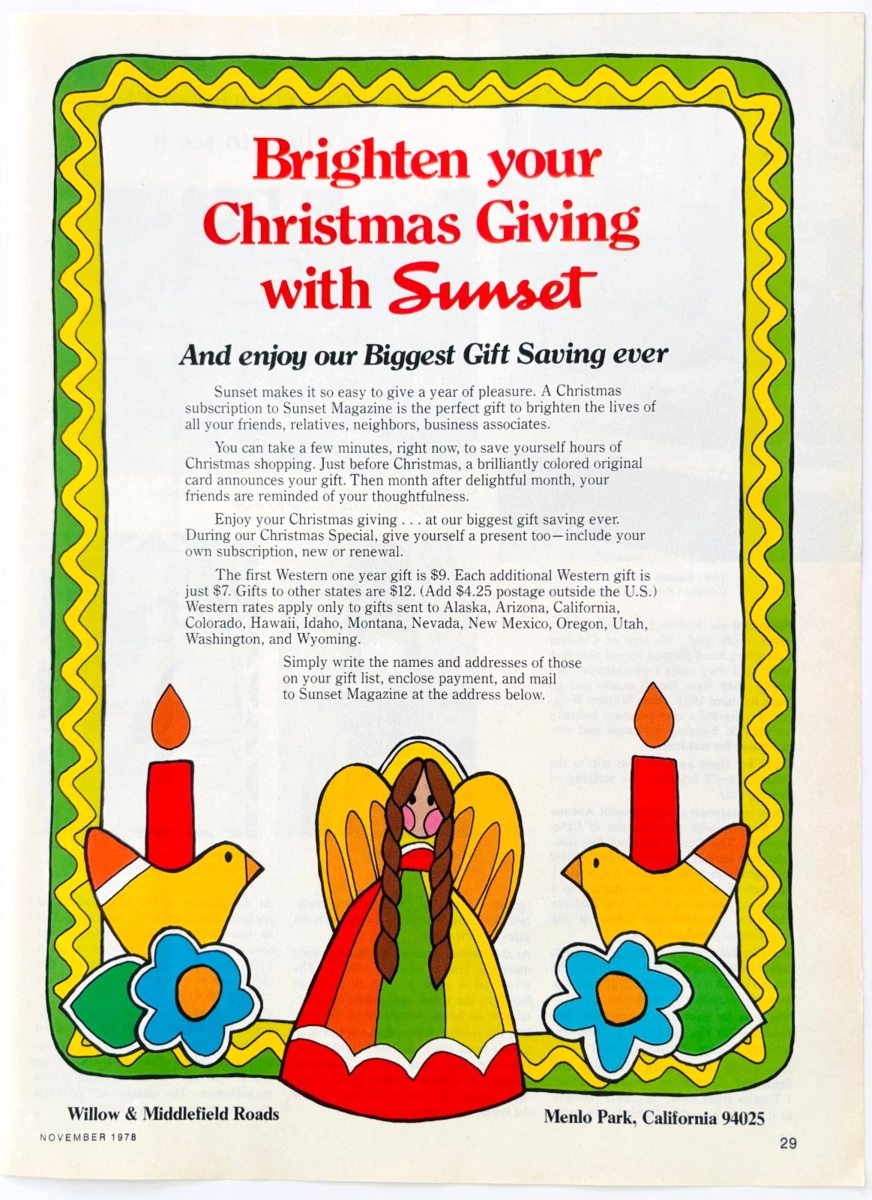 1978 Sunset Magazine Christmas Gift Advertisement Vintage Retro Art DWW13A