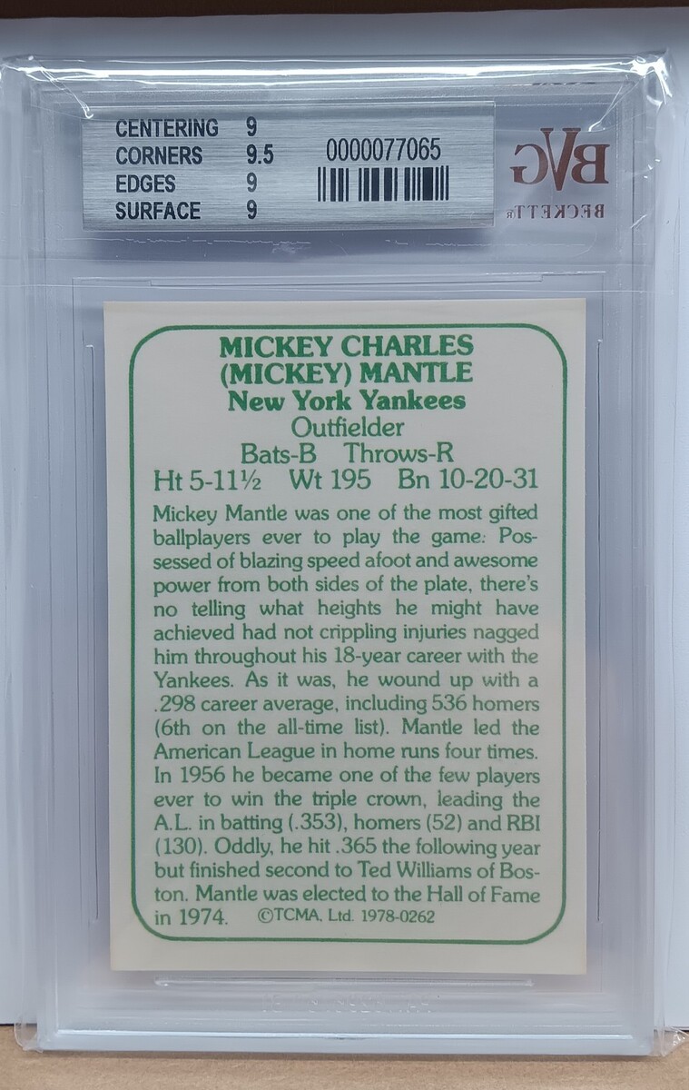 1978 TCMA The 1960?s Mickey Mantle #262 BGS 9 / BVG MT New York Yankees