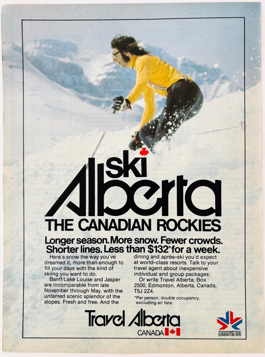 1978 Travel Alberta Canada Advertisement Vintage Rockies Skiing Winter DWW13A