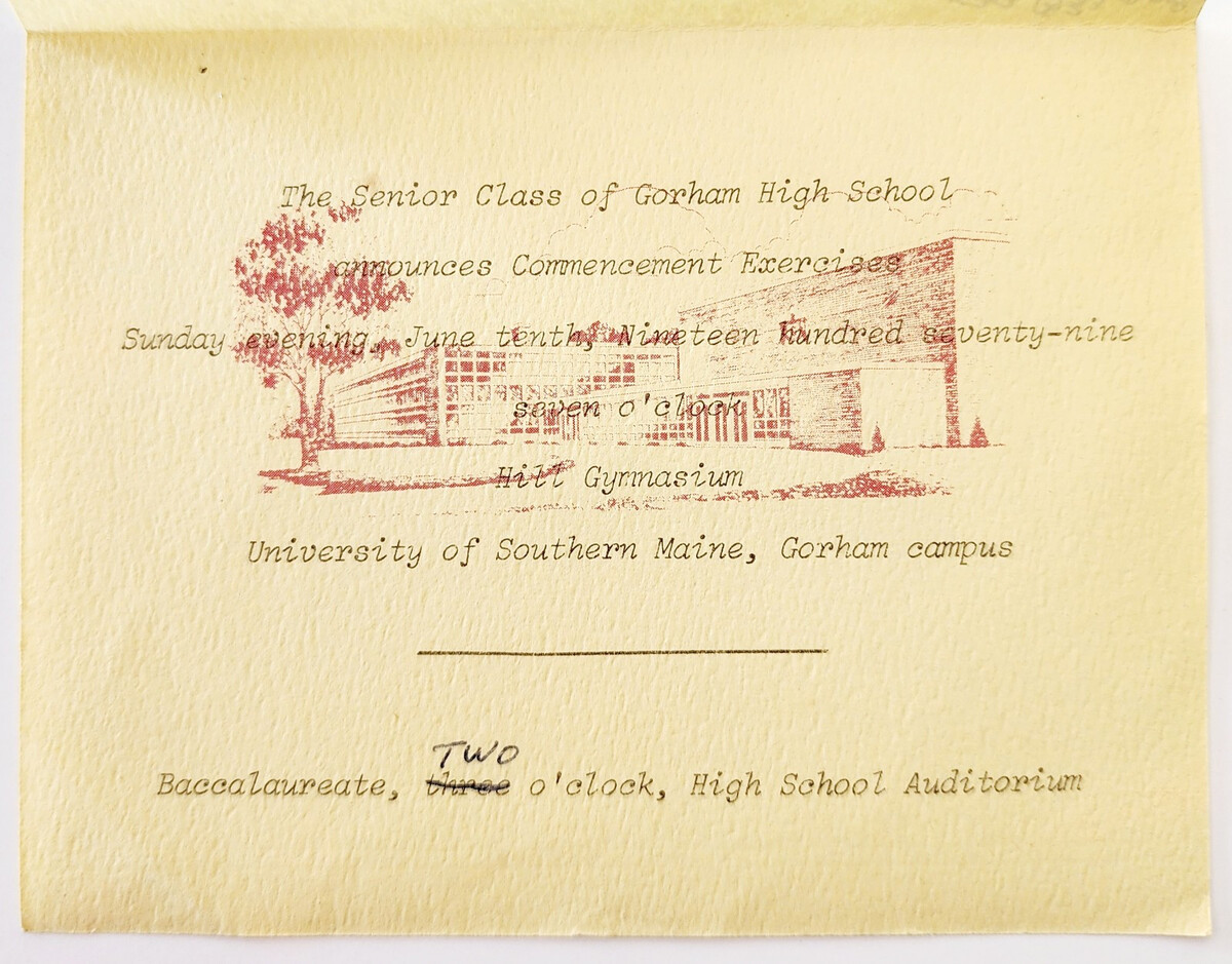 - 1979 Gorham High School Commencement Exercise Invitation Maine Baccalaureate F6C