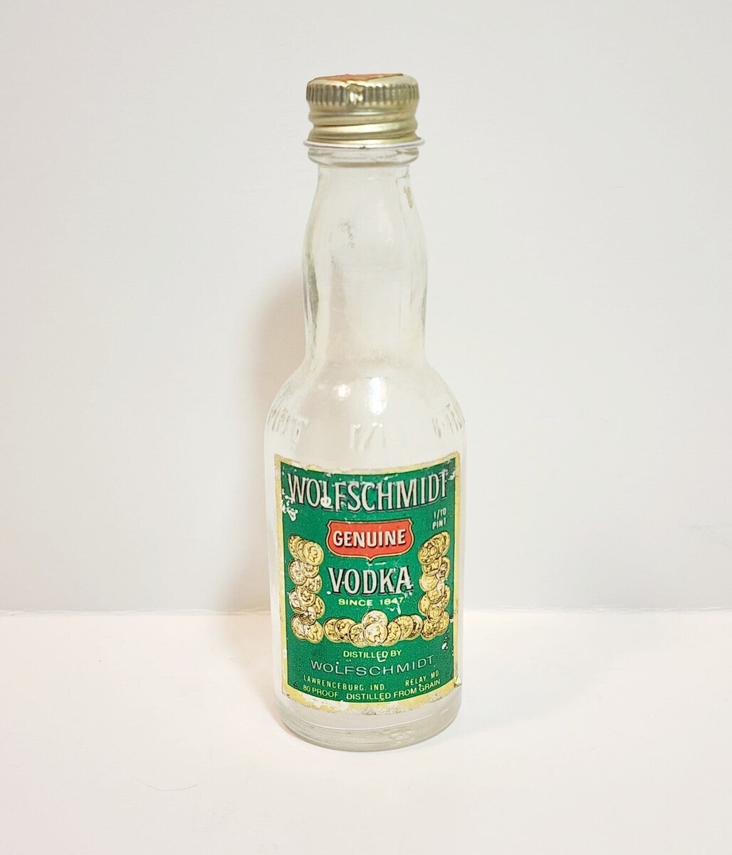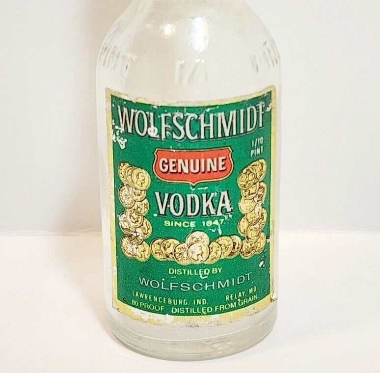 1979 Wolfschmidt Vodka Empty Glass Mini Bottle 1/10 Pint Vintage