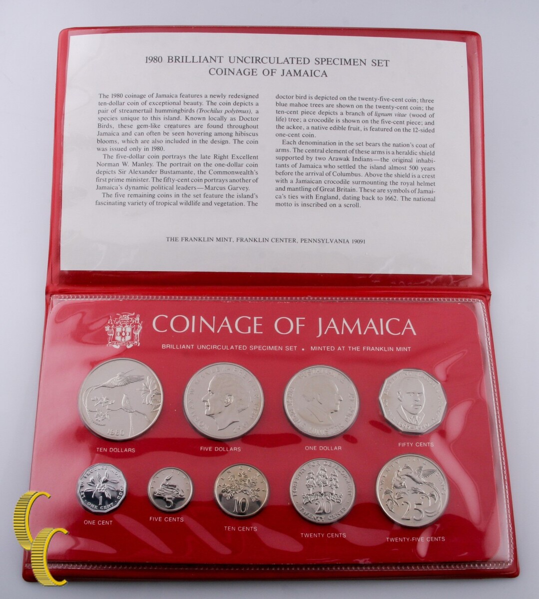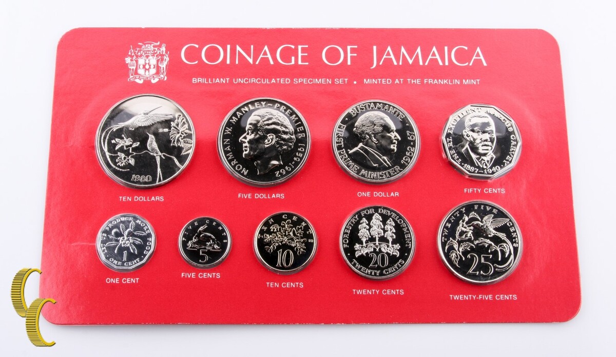 1980 Acuñacion de Jamaica Conjunto de especímenes brillantes sin circular (BU)