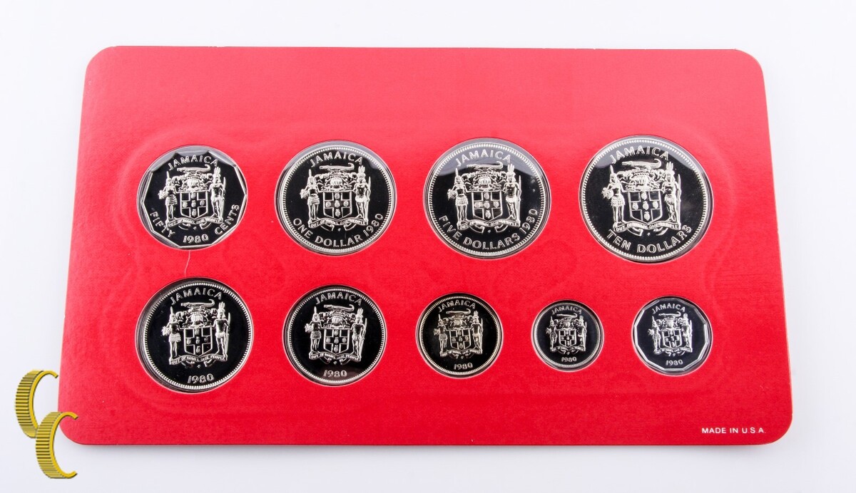 - 1980 Acuñación De Jamaica Brilliant Uncirculated ( Bu ) Muestra Juego 9 Piezas