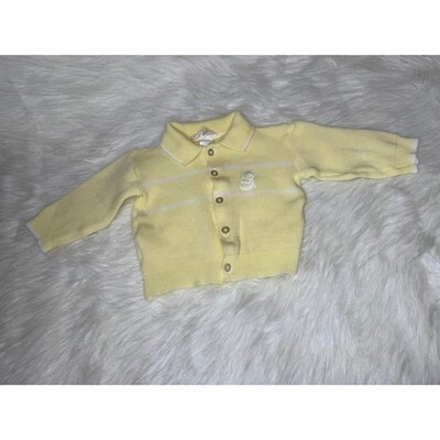 1980's Baby Yellow Knit Cardigan Sweater Teddy Bear Size Newborn to 9 Months