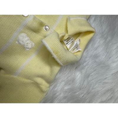 - 1980's Baby Yellow Knit Cardigan Sweater Teddy Bear Size Newborn to 9 Months