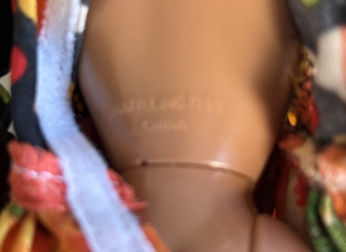 1980's Mattel Barbie as Windy Witch: 1966 Twist N Turn Body, Blonde Hair, Blue Eyes, No lower lashes, 4 Upper Lashes, No Date on head, Snap Knees, Handmade Outfit. We believe that she is the 1989 Cool Times Barbie. She was missing her original ring and earrings, so we gave her some to match her outfit. Windy Comes with her very own cauldron. She is a rescued and repaired Barbie. She had a dark orange torso, but we were able to remove much of the toning. Good Used Condition - Doll Stand Not Included - See Photos for further description.
