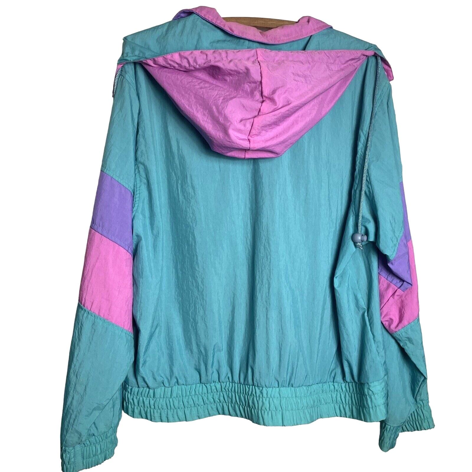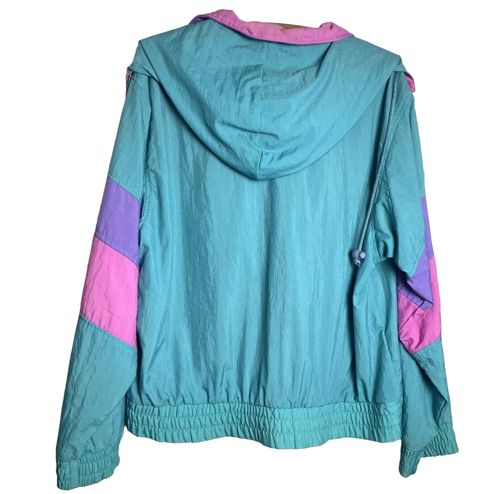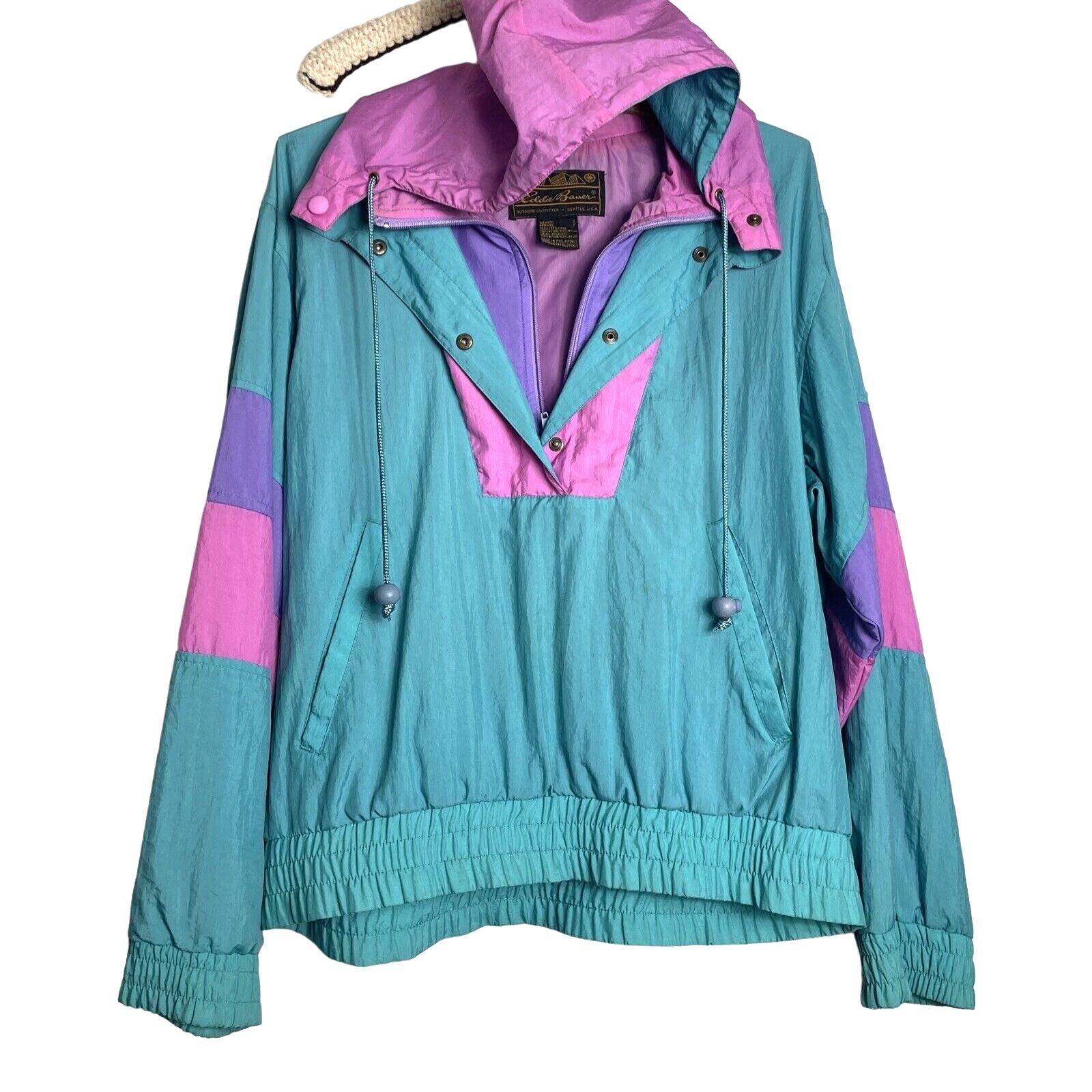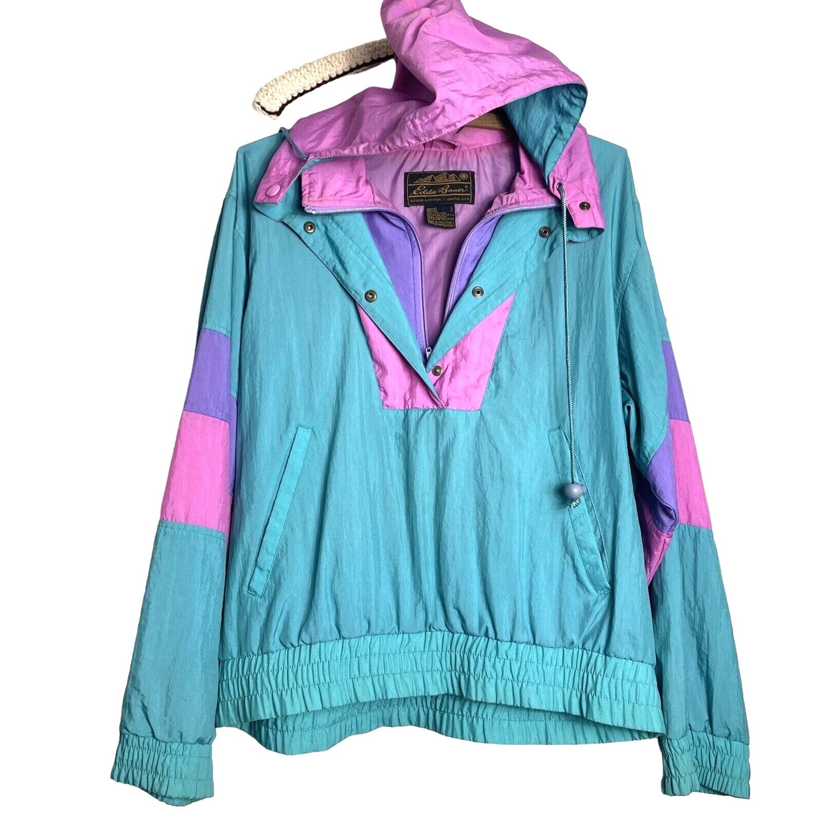 1980s Eddie Bauer Hooded Windbreaker–Women’s Small–Pink Teal Purple–Pullover