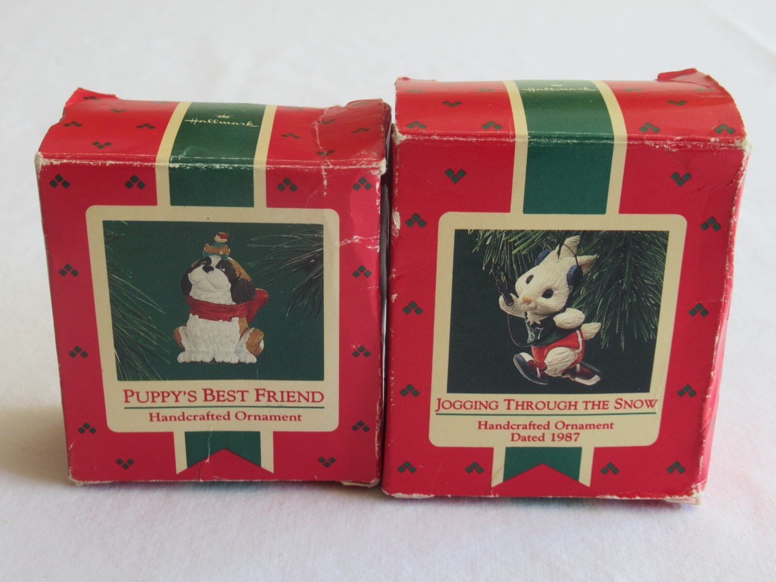 - 1980s Hallmark Ornaments Lot 2x Puppys Best Friend Jogging Through The Snow VTG