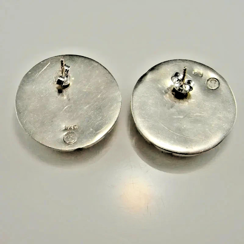 1980s Handmade OOAK Puffy Button CIRCLE STERLING SILVER Earrings OFFeR!