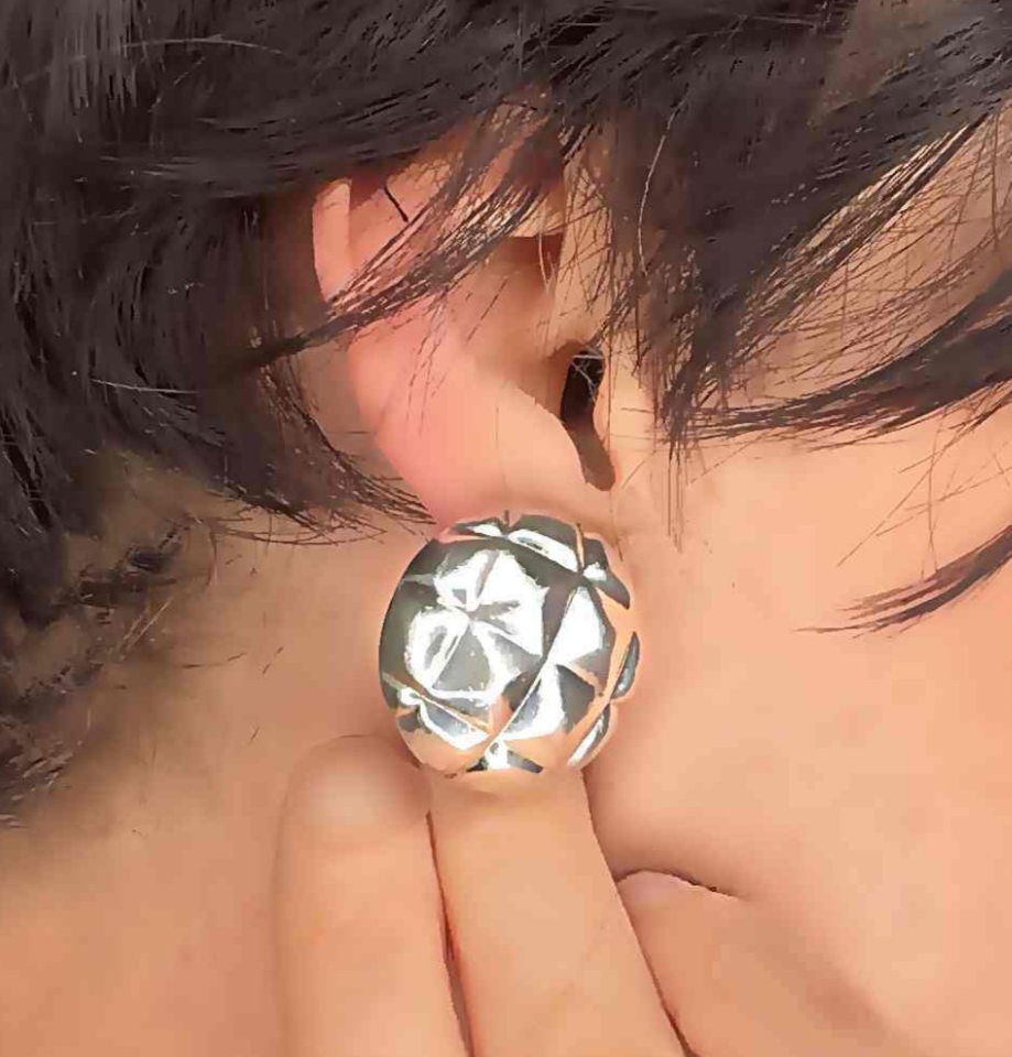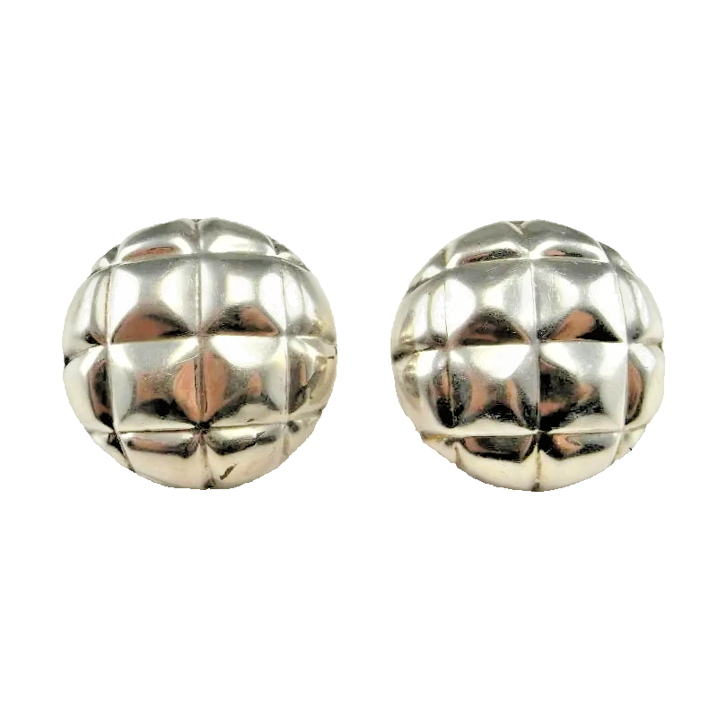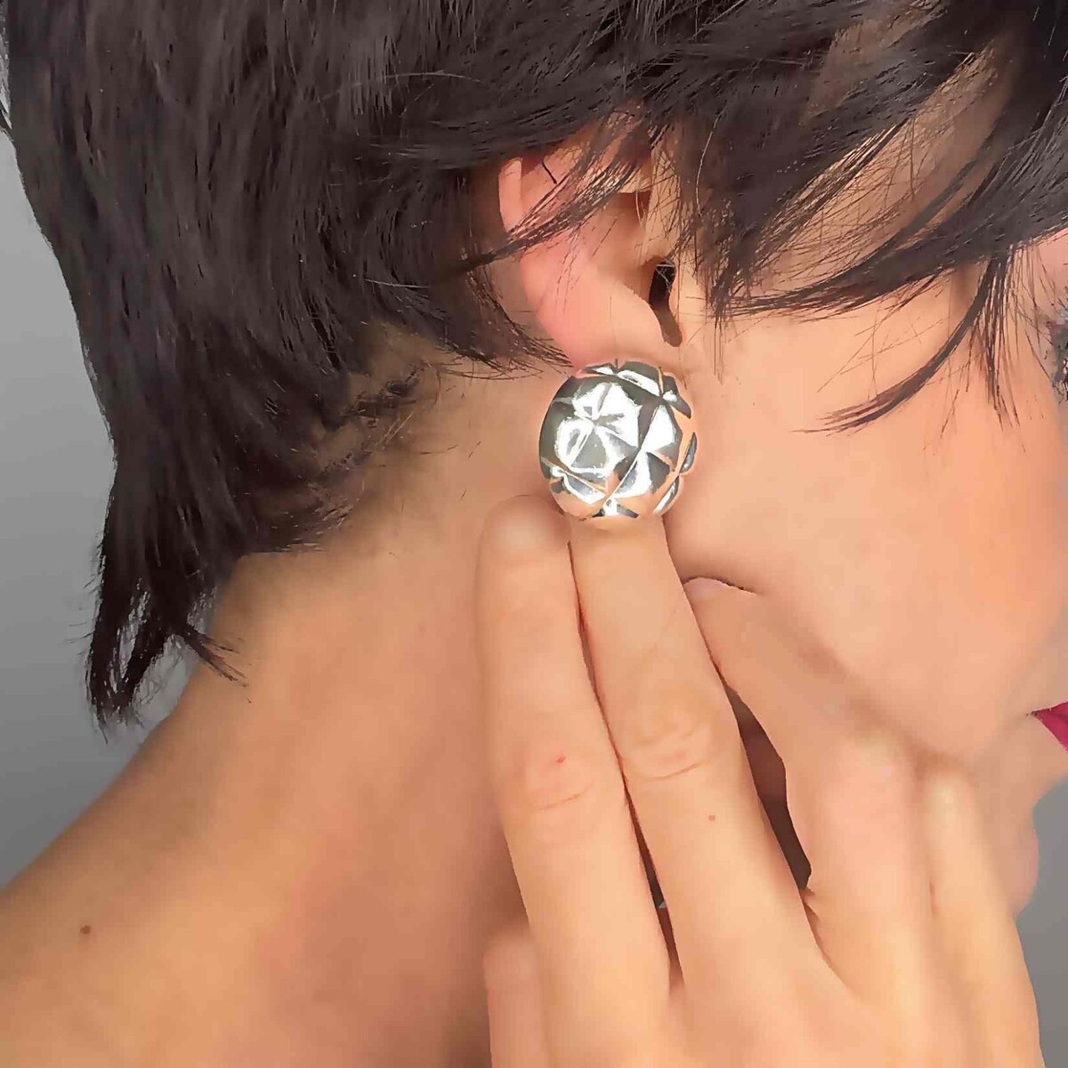 - 1980s Handmade OOAK Puffy Button CIRCLE STERLING SILVER Earrings OFFeR!
