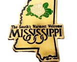 - 1980s Mississippi Magnolia State Flower Pin Enamel Filled Vintage Gold Tone F6E